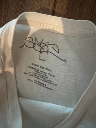 Condition: Very good. No visible tears or rips etc. Tiny faint stain spots (See photos) Not easily visible. See photos. Tee is exactly as the photos shoe.