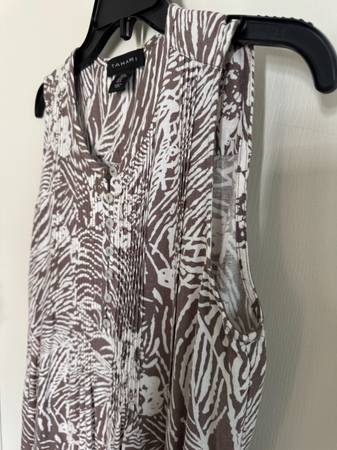 TAHARI Sleeveless Linen & Viscose Blend Women’s Dress Brown & White Size Med NWOT
