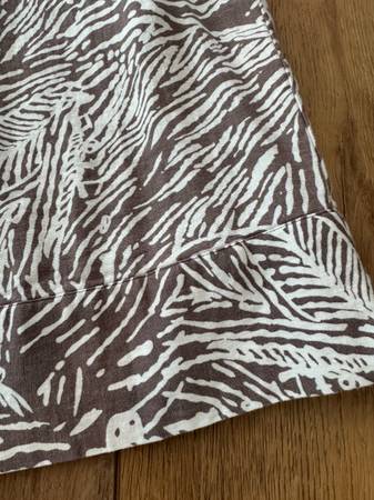 See photos for lovely stitching details in the dress (buttons and pleated front, lots of detailed stitching, Cool band across the bottom & pleated on the back.