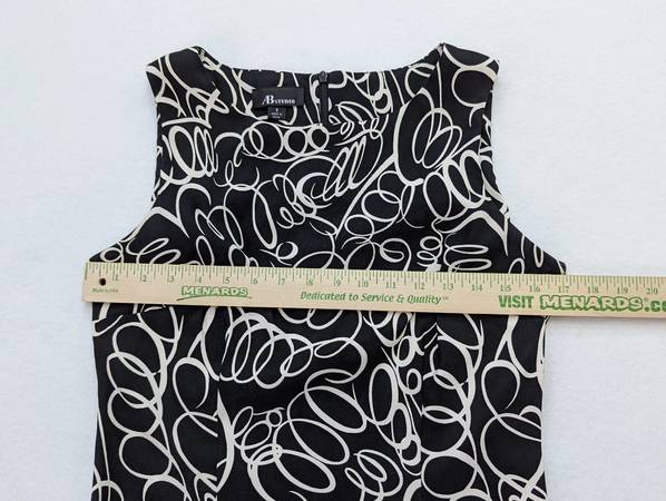 AB Studio Brand Women's black and white geometric print sheath dress - Size 8 97% polyester, 3% spandex Great Like New Condition From Non-Smoking Home **If you are reading this ad, this is available...