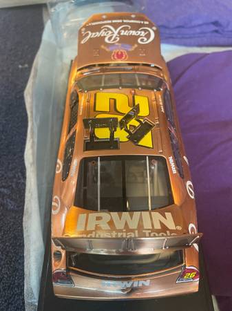 New in Original Box. Jamie McMurray 2006 #26 "Crown Royal" Copper Finish Race Paint Scheme) 1:24 scale Ford Fusion Preferred Series produced by Team Caliber. Roush Racing. Hood, Trunk, and Roof Flaps all open on this car - Diecast chassis rails with a molded floor pan - Racing instrument panels with clear gauge faces and imprinted dial details - bumper and roof decals - three dimensional alloy-finish hood and trunk pins - highly detailed engine compartment and much more. Diecast Comes attached to a black acrylic base. Production Limited to 1008
