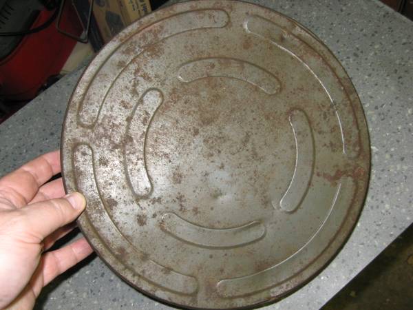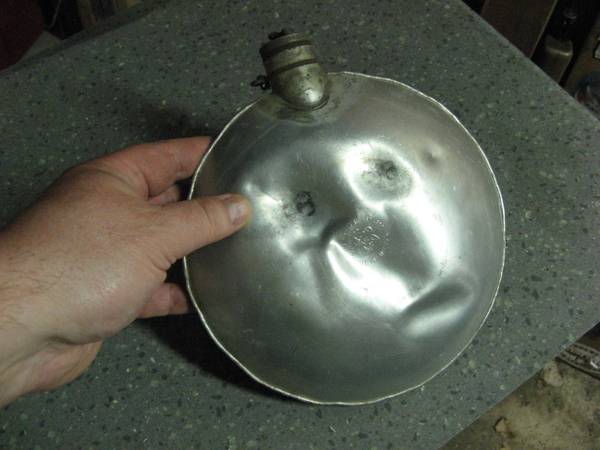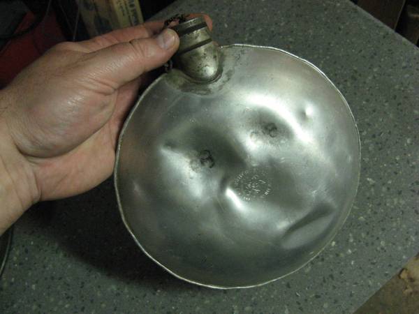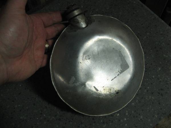 7 1/2" aluminum boy scouts canteen - $10 Film reel container made by Eastman Kodak company, Rochester NY - $10 2 piece aluminum and glass serving dish - $10