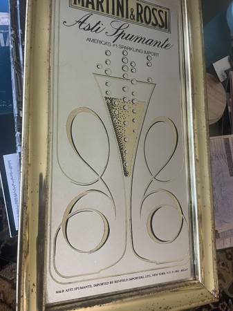 Used Vintage Advertising Martini & Rossi Asti Spumante Mirror. From a Bloomington Tavern in the 80's. Metal Frame shows signs of age. Only $10