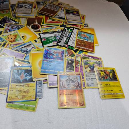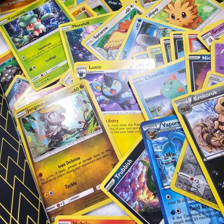 Random cards, a few holographic/holo/shiny cards, some common,uncommon,rare