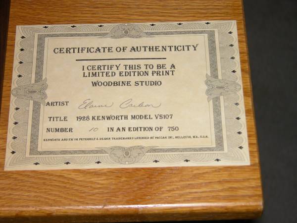 1928 Kenworth Wood Plaque with COA - NEW - collectibles - by owner -...