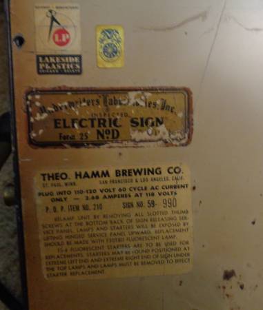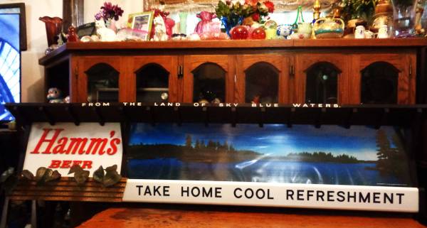 I have a 1965 Hamms St Paul Beer Light Bar Sign #59 Non- Motion Take Home Cool Refreshment Hamm’s 77” Sign for sale. This is a rare large and heavy sign that works great. 18" high 6' 5" long 77" and 9" deep. Item #210 Sign number 59 -990 59th made out of 990 production. The sign is in nice vintage condition. some scratch and age marks. Please see all photos for the condition of this 1965 Hamm's beer sign. email with phone number or I will delete as spam. Thanks