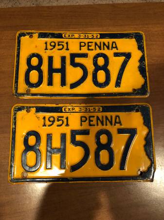 Vintage Pennsylvania License Plates. Great for collection. Display in man cave, shop, garage, bar, cabin, etc..