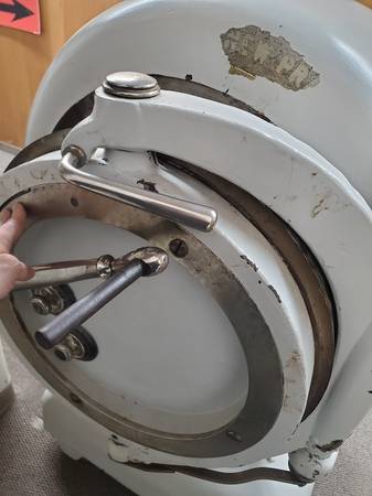 Vintage/Antique Cannonball Safe, is in the first Bank from New Prague Minnesota, it is about 60" tall x 35" Wide x 32" deep, it weights about 3000 lbs, it is on wheels and doesn't need to go up or down steps. Buyer is responsible for moving, The door is open but do not have the lock numbers. Since it is open I believe there is a way to reset the combinations. But not sure, Asking $750
