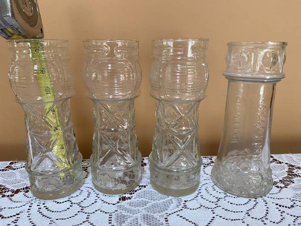 For sale 4 glasses About 7" tall 3 are the same as each other. $15 Check your spam box. 75L
