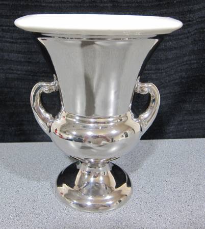 This vintage Haeger USA planter is pre-1935, when it changed to Royal Haeger. Planter is in excellent condition, no cracks or chip, very shiny platinum finish. Size: 9" tall, 7 1/4" dia. at top, 4...