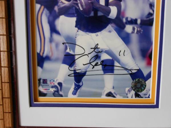 Artwork is a signed photo of Minnesota Vikings Daunte Culpepper. Artwork has 3 mats on it and is ready for mounting in a 11" X 14" frame.