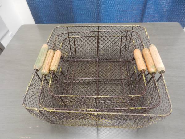 This is a set of three (3) square nesting wire egg baskets with wood handles.