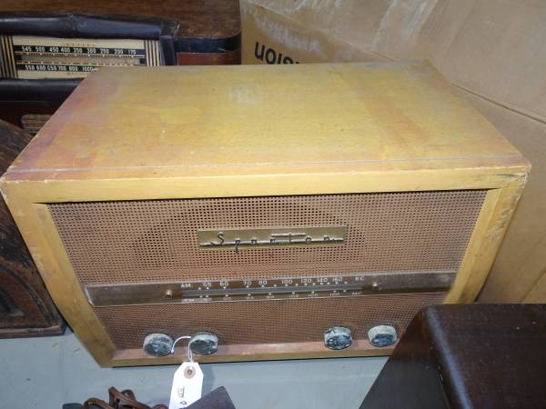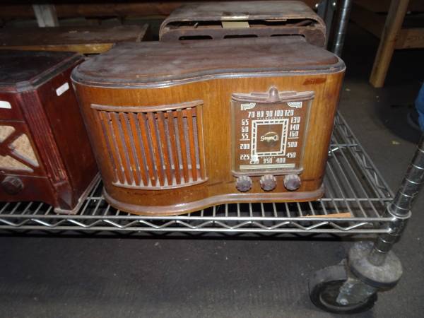 We have a few very different wood cabinet radios. Airline, Zenith, Sonora, Motorola, Sparton, a Newcomb school radio, and others. Some will need cabinet restoration, but some are nice originals. Come to our sale and have a look.