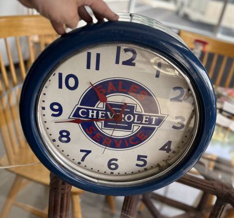 Vintage Neon Chevrolet Chevy Sales Service Dealer Clock Working Tested Dealership Rare Advertising