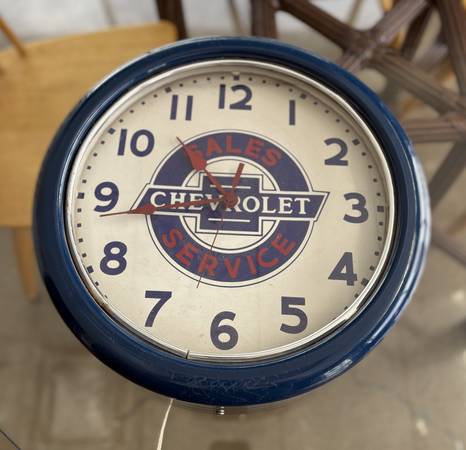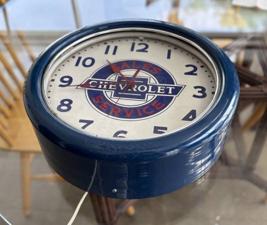 Guessing that this is from the 80s or 90s. I do not believe it is earlier. Not sure of the date of manufacture. Guessing 80's based on the cord and battery clock. It's heavy and made well. Everything works. Very hard to find. I have actually never seen an older version of this specific style of Chevy clock.