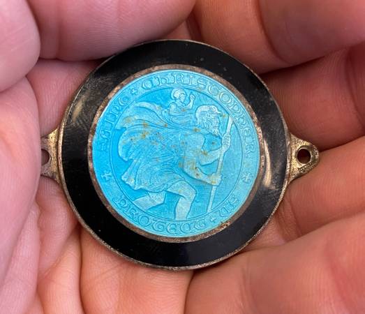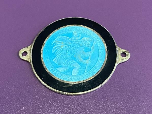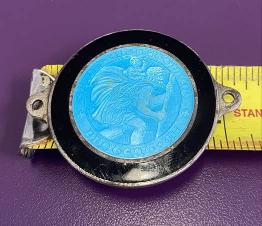 Vintage St. Christopher Sterling Silver Enamel Dashboard Badge Medallion Medal made by Charles Thomae St. St. Christopher is the Patron saint of Travelers. Very rare.