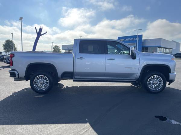 Silver Ice Metallic 2022 Chevrolet Silverado 3500HD High Country 4WD with Jet Black Leather! The Odometer is 15,697 miles below market average! Clean CARFAX. Details: ENG: DURAMAX 6.6L TURBO-DIESEL HIGH COUNTRY DELUXE FORWARD COLLISION ALERT LANE DEPARTURE WARNING AUTOMATIC EMERGENCY BRAKING INTELLIBEAM - AUTO HIGH BEAM FOLLOWING DISTANCE INDICATOR SAFETY ALERT SEAT REAR CAMERA MIRROR HEAD-UP DISPLAY GOOSENECK/5TH WHEEL PACKAGE POWER RETRACTABLE ASSIST STEPS WITH PERIMETER LIGHTING HITCH PACKAGE (DEALER INSTALLED) Z71 OFF-ROAD PACKAGE OFF-ROAD SUSPENSION INCLUDING TWIN TUBE SHOCKS HILL DESCENT CONTROL SKID PLATES HIGH IDLE SWITCH LED ROOF MARKER LAMPS REAR AXLE: 3.42 RATIO GVWR: 12,100 LBS. (5,488 KG) 20 POLISHED ALUMINUM WHEELS Matt Saxe Chevrolet's number one goal is to make sure that our customers are Completely Satisfied. Not just during a sale, but for all of your automotive needs for thousands of miles down the road! Each used car on the lot goes through an extensive safety inspection, oil change, and thorough detailing. You can leave here with the peace of mind knowing that your new used car is clean and in safe mechanical condition. We even go the extra mile and change the windshield wipers on every vehicle. Each vehicle is ready for you to make it 'yours'!