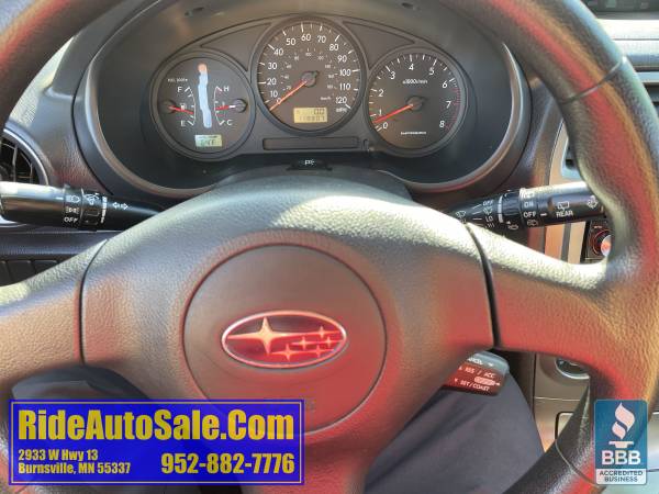 2.5i Package, 5 passenger 5 door wagon, All wheel drive, extremely reliable and fuel efficient 2.5 liter 4cyl with great MPG's, Automatic transmission, Air conditioning with climate control, full power options including windows/locks/mirrors, gray cloth front bucket seats with rear bench seating and large cargo area, aftermarket Pioneer sound system with iPod / USB and bluetooth connections, Alloy wheels with 4 brand new Michelin tires, all new brakes and tight suspension, well maintained with recent maintenance history by JM Automotive who specializes in Subaru's in Osseo MN (new timing belt with gasket, new water pump and tensioners, new seals and gaskets, new ignition coils and spark plugs, new starter these recent services are about a $3000+ service within the last few months), very sharp and clean, runs and drives great, clean title vehicle with no accidents and only 2 previous owners, available free CARFAX.COM history report at RideAutoSale.com!!!