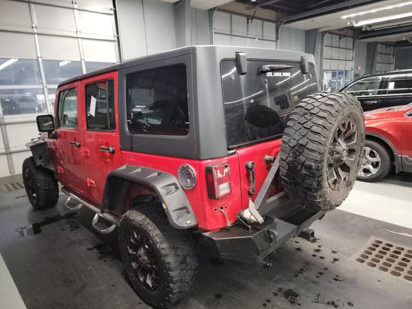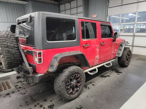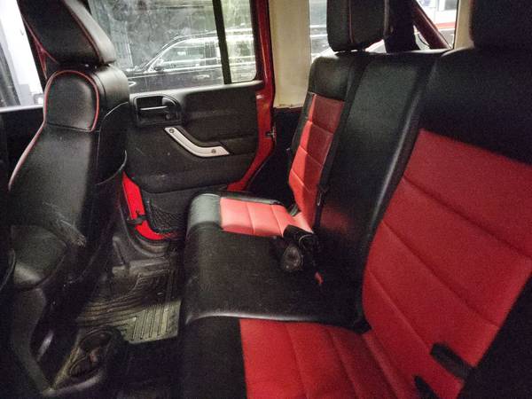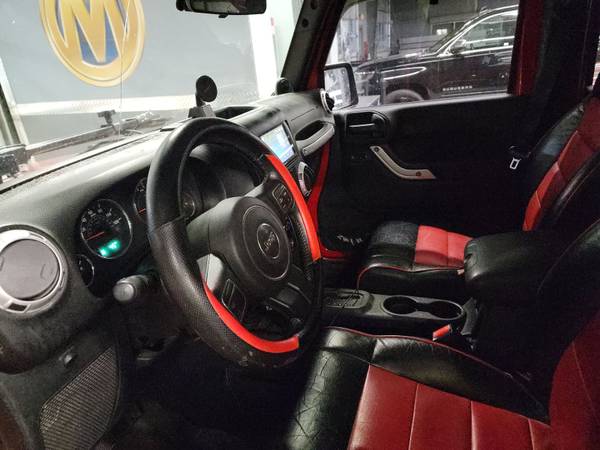 Unlimited Sahara, 5 passenger 4 door with removable hardtop SUV, legendary 4 Wheel Drive with traction control and stability control, Economical and extremely reliable 3.8 liter V6 with great MPG's, Automatic transmission, Air conditioning with great working heater, fully loaded with power options including windows/locks/mirror's, 2 tone red and black leather bucket front seats with rear bench seating and large cargo area, upgraded Pioneer large touch screen sound system with iPod and bluetooth connection, black after market 17" inch Alloy wheels with nice 265 BFGoodrich tires, good brakes and tight suspension, custom bumpers and side step rails, comes with a winch and off road lights, factory tinted windows, this vehicle was sold here at Ride Auto about 3 years ago and has always been serviced by an attached shop called Pucci's garage, this vehicle is being sold on "consignment" for our title clerks son, very clean runs and drives great, clean title vehicle with great maintained history, free CARFAX.COM history report available on RideAutoSale.com!!!