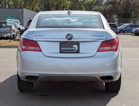 This vehicle is located at our Burnsville store. CLEAN TITLE! ONE OWNER!! FRESH OIL CHANGE!! NEW PADS AND ROTORS! The 2016 Buick LaCrosse is a refined full-size sedan that combines quiet luxury, smooth performance, and modern technology in an elegant, understated package. With its sleek, sculpted design and premium interior materials, the LaCrosse offers a truly comfortable ride, enhanced by Buick’s QuietTuning technology that keeps road noise to a minimum. Under the hood, it features either a powerful 3.6L V6 that delivers 304 horsepower for confident highway merging and passing. Inside, you'll find spacious seating for five, supportive leather-trimmed seats, and a user-friendly infotainment system with an 8-inch touchscreen, Bluetooth, and available navigation, as well as available upgrades like heated and ventilated front seats, a premium Bose audio system, and advanced safety features such as blind-spot monitoring and forward collision alert. With its smooth ride quality, upscale feel, and impressive list of features, the 2016 LaCrosse is an excellent choice for drivers seeking near-luxury comfort without the premium-brand price tag. Stop on by to RAVMOTORS to test drive this car. We’ll be more than happy to help you find the right car at the right price. We don't have any pushy or high-pressure salespeople. So come in and see for yourself why we have been the #1 DealerRater used car dealership of the year 5 years in a row. Extended Warranties and Financing options are available. Call us for vehicle availability at 952-456-4041. For more information and a full inventory visit us at www.ravmotors.com. We are open Monday – Thursday 10 am – 7 pm, Friday - Saturday 9:30 am – 6 pm.