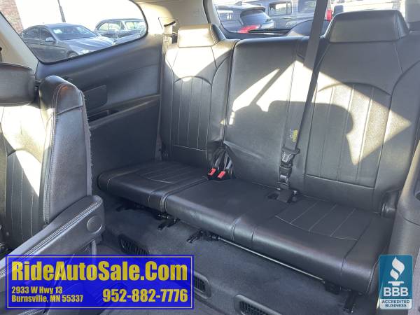 Leather trim, 7 passenger Cross Over SUV, All Wheel Drive, powerful and reliable 3.6 liter V6 with great MPG's, Automatic transmission, Air conditioning with dual zone front and rear climate control, fully loaded with all power options including windows/locks/mirrors, black leather heated power bucket front seats with 2nd row quad seating and 3rd row folding flat into floor seating, heated steering wheel, upgraded large screen factory sound system with Bluetooth and iPod/USB Connections, lots of safety options such as back up camera / blind side monitoring / cross traffic alert, power rear lift-gate, 19" inch Chrome Alloy wheels with nice Michelin tires, good brakes and suspension, factory tinted windows, runs and drives great, clean title with no accidents, great maintenance history, free CARFAX.COM history report available on RideAutoSale.com!!!