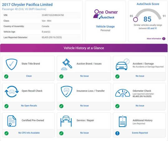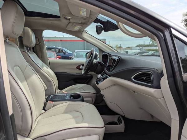 This vehicle is located at our Burnsville store. CLEAN TITLE NO ACCIDENTS!! FRESH OIL CHANGE!! NEW PADS AND ROTORS!! The 2017 Chrysler Pacifica Limited is the top-tier minivan that redefines what family driving should feel like, offering a luxurious, tech-filled, and ultra-functional experience that makes every trip easier and more enjoyable. Powered by a strong 3.6L V6 engine with 287 horsepower and a smooth 9-speed automatic transmission, it delivers confident acceleration and a quiet, composed ride, whether you're on a family road trip or just running errands. Inside, the cabin feels more like a premium SUV than a minivan, with plush Nappa leather seating, ventilated and heated front seats, power-folding third-row seats, and a tri-pane panoramic sunroof that fills the space with natural light. The Limited trim is packed with high-end features like the Uconnect Theater rear entertainment system with dual 10-inch touchscreens, a built-in Stow ‘n Vac vacuum for quick cleanups, and hands-free sliding doors and liftgate that open with just the wave of a foot. Safety is just as impressive, with standard blind-spot monitoring, rear cross-path detection, a 360-degree surround-view camera, and available adaptive cruise control with stop-and-go functionality. Plus, with Chrysler’s innovative Stow ‘n Go seating, the second- and third-row seats fold flat into the floor in seconds, turning this refined people-mover into a cargo-hauling champ. If you're looking for a minivan that combines luxury, practicality, and smart technology in one sleek package, the 2017 Pacifica Limited is hands-down one of the best choices on the road. Stop on by to RAVMOTORS to test drive this car. We’ll be more than happy to help you find the right car at the right price. We don't have any pushy or high-pressure salespeople. So come in and see for yourself why we have been the #1 DealerRater used car dealership of the year 5 years in a row. Extended Warranties and Financing options are available. Call us for vehicle availability at 952-456-4041. For more information and a full inventory visit us at www.ravmotors.com. We are open Monday – Thursday 10 am – 7 pm, Friday - Saturday 9:30 am – 6 pm.