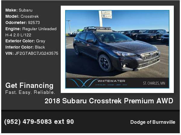 2018 SUBARU CROSSTREK PREMIUM $1,000 DOWN DELIVER'S!