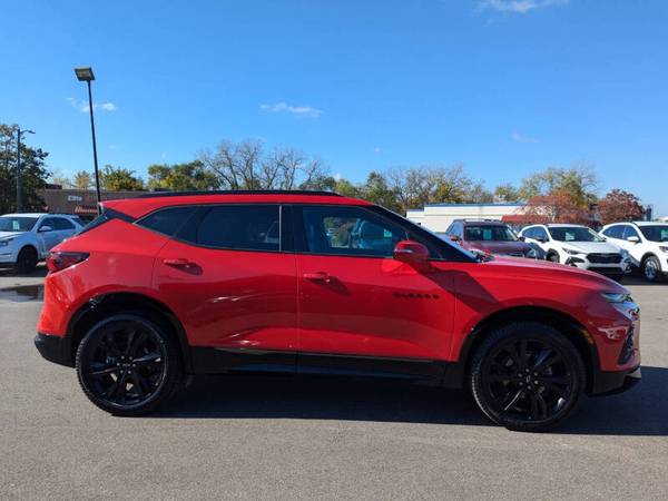 This vehicle is located at our Burnsville store. Unleash bold style and dynamic performance with the 2021 Chevrolet Blazer RS AWD, the midsize SUV designed for drivers who want sport-inspired sophistication without sacrificing practicality. With its aggressive Camaro-inspired design, signature blacked-out grille, and 20-inch dark-finish alloy wheels, the Blazer RS commands attention from every angle. Beneath the hood, a potent 3.6L V6 engine delivers 308 horsepower, paired with a smooth 9-speed automatic transmission and intelligent all-wheel drive for confident traction and exhilarating performance in any condition. Step inside and you’re greeted by a driver-focused cockpit with premium leather-appointed seating, red contrast stitching, and ambient interior lighting that amplifies the RS’s sporty attitude. The intuitive 8-inch Chevrolet Infotainment 3 Plus system with Apple CarPlay, Android Auto, and available navigation keeps you seamlessly connected, while advanced safety technologies—like Rear Cross-Traffic Alert, Lane Keep Assist, and Adaptive Cruise Control—help you stay protected on the road. With a perfect balance of muscle, refinement, and versatility, the 2021 Chevrolet Blazer RS AWD isn’t just an SUV—it’s a statement of style and performance built to turn every drive into an experience. Stop by RAVMOTORS to test drive this car. We’ll be more than happy to help you find the right car at the right price. We don't have any pushy or high-pressure salespeople. So come in and see for yourself why we have been the #1 DealerRater used car dealership of the year 5 years in a row. Extended Warranties and Financing options are available. Call us for vehicle availability at 952-456-4041. For more information and a full inventory visit us at www.ravmotors.com. We are open Monday – Thursday 10 am – 7 pm, Friday - Saturday 9:30 am – 6 pm.