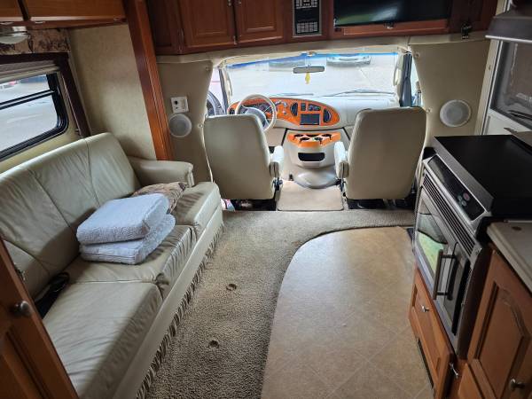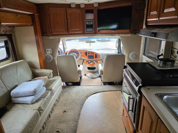 For sale is a 2006 Ford E450 By Lexington 28ft. It has 72,000 miles. The Engine and transmission in Very Good Condition, transmission shifts smooth. It has almost new tires. The interior is in Very Good Condition. All the appliances do work. It has a shower, toilet, fridge, oven, LCD screen, double din CD/MP3/Navigation Audio system. It does come with Navigation. All the cabinets are in great shape. Everything including Appliances does work. There is no problems that we are aware off.