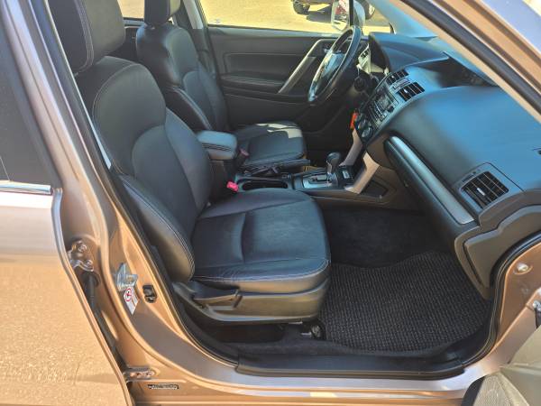 For sale a really nice and well cared for 2014 Subaru Forester 2.5i Limited with only 97k miles on it. This SUV runs and drives really well and there are no mechanical issues or problems to deal with. Engine and transmission are in perfect working condition. Good tires and brakes. Quiet suspension. Body is near perfect (see pics), only a small scrape on the passenger side, no rust. EVERYTHING works as it should, including AC and all power options. I purchased this vehicle from an auction in SD. It was listed as fire damage, but in reality, it suffered smoke damage. I can only speak from experience, and my assessment is that something smoldered in the trunk, not causing fire damage, but smoke damage instead. I only had to replace one piece of interior trim and everything else was cleaned and detailed. This is all i k ow about the vehicle and what i learned from test driving it for a few hundred miles. If you wish to do some more research, the VIN is posted. Feel free to contact me with questions not answered here. I work by appointments only.