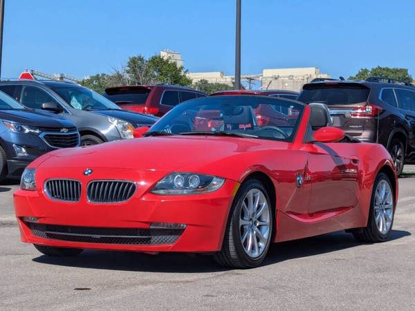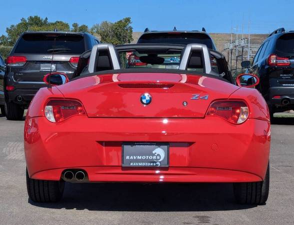 This vehicle is located at our Burnsville store. Turn heads and feel the thrill of open-air driving in this stunning 2008 BMW Z4 3.0i Convertible, finished in a bold and eye-catching red that perfectly matches its sporty personality. With its classic long-hood, short-deck proportions and sculpted body lines, this roadster delivers timeless style and German-engineered performance in one irresistible package. Under the hood, the Z4 boasts a smooth and responsive 3.0-liter inline-6 engine producing 215 horsepower, paired with a precise 6-speed automatic transmission giving you an engaging drive every time you hit the road. The power soft-top drops quickly at the push of a button, letting you enjoy sunshine and scenery with ease, while the sport-tuned suspension and near-perfect 50/50 weight distribution provide sharp, confident handling through every curve. Inside, you'll find a driver-focused cockpit with leather seating, premium materials, and classic BMW simplicity—everything you need, nothing you don’t. With relatively low mileage for its age and a reputation for solid reliability, this Z4 isn’t just a weekend toy—it’s a timeless, affordable entry into true driving pleasure. Whether you're cruising the coast, hitting back roads, or just want something that makes every drive feel special, this Z4 delivers style, spirit, and smiles in every mile. Stop by RAVMOTORS to test drive this car. We’ll be more than happy to help you find the right car at the right price. We don't have any pushy or high-pressure salespeople. So come in and see for yourself why we have been the #1 DealerRater used car dealership of the year 5 years in a row. Extended Warranties and Financing options are available. Call us for vehicle availability at 952-456-4041. For more information and a full inventory visit us at www.ravmotors.com. We are open Monday – Thursday 10 am – 7 pm, Friday - Saturday 9:30 am – 6 pm.