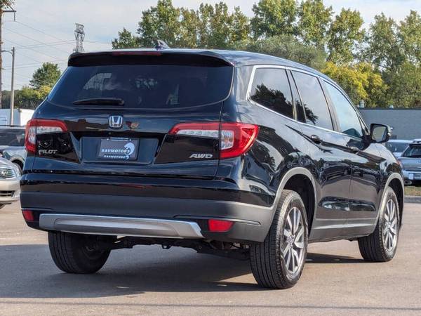 This vehicle is located at our Burnsville store. Experience the perfect blend of reliability, comfort, and performance with this 2019 Honda Pilot EX-L AWD — a versatile midsize SUV that’s ready for anything from family road trips to daily commutes. With its confident All-Wheel Drive system, this Pilot handles all weather conditions with ease, while the powerful yet efficient 3.5L V6 engine delivers smooth acceleration and responsive handling. Inside, you’ll find a well-appointed cabin featuring leather-trimmed seats, a power moonroof, tri-zone automatic climate control, and a spacious third row — comfortably seating up to 8 passengers. The EX-L trim also includes a power tailgate, heated front seats, an 8-inch touchscreen with Apple CarPlay and Android Auto, and advanced safety features from Honda Sensing, including adaptive cruise control, lane keeping assist, and collision mitigation braking. With a clean design, generous cargo space, and Honda’s legendary reliability, this Pilot EX-L is the ultimate family-friendly SUV that doesn’t compromise on style, tech, or capability. Stop by RAVMOTORS to test drive this car. We’ll be more than happy to help you find the right car at the right price. We don't have any pushy or high-pressure salespeople. So come in and see for yourself why we have been the #1 DealerRater used car dealership of the year 5 years in a row. Extended Warranties and Financing options are available. Call us for vehicle availability at 952-456-4041. For more information and a full inventory visit us at www.ravmotors.com. We are open Monday – Thursday 10 am – 7 pm, Friday - Saturday 9:30 am – 6 pm.