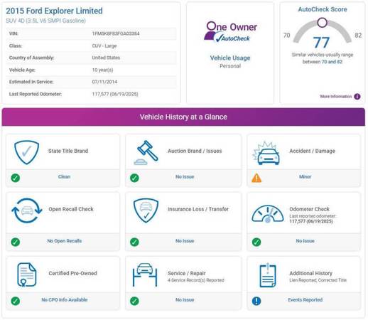 This vehicle is located at our Burnsville store. CLEAN TITLE!! ONE OWNER!! Meticulously maintained 2015 Ford Explorer Limited AWD—a perfect blend of luxury, performance, and all-weather capability. This full-size SUV is powered by a responsive 3.5L V6 engine paired with an advanced all-wheel drive system, giving you smooth, confident handling whether you're commuting in the city, taking long road trips, or navigating through snow and rain. The Limited trim offers a premium driving experience with features like plush leather upholstery, heated and cooled front seats, heated second-row seats, power-folding third-row seating, a dual-panel sunroof, and a hands-free power liftgate. Technology is front and center, with a large touchscreen infotainment system, voice-activated navigation, Bluetooth connectivity, a premium Sony audio system, and push-button start. Safety hasn’t been overlooked either, thanks to features like a rearview camera, blind spot monitoring, rear cross-traffic alert, and parking sensors. This Explorer has been serviced, has a clean title, and is in excellent condition inside and out. If you’re looking for a capable, comfortable, and feature-rich SUV that’s ready to go the distance, this 2015 Ford Explorer Limited AWD is an outstanding choice. Stop by RAVMOTORS to test drive this car. We’ll be more than happy to help you find the right car at the right price. We don't have any pushy or high-pressure salespeople. So come in and see for yourself why we have been the #1 DealerRater used car dealership of the year 5 years in a row. Extended Warranties and Financing options are available. Call us for vehicle availability at 952-456-4041. For more information and a full inventory visit us at www.ravmotors.com. We are open Monday – Thursday 10 am – 7 pm, Friday - Saturday 9:30 am – 6 pm.