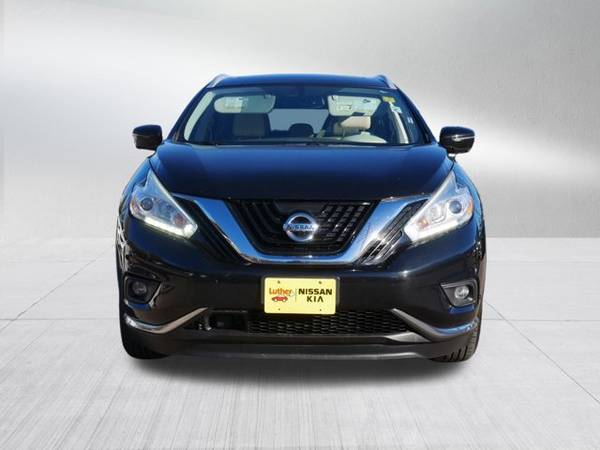 ** Nissan Certified Select ** SL TECHNOLOGY PACKAGE, Heated Leather Seats, Nav System, Moonroof, Aluminum Wheels, All Wheel Drive, Premium Sound System. GREAT MILES 70,321! SL trim. EPA 28 MPG Hwy/21 MPG City! AND MORE!PURCHASE WITH CONFIDENCENissan Certified Select Certified. Nissan Certified Select Certified, GREAT MILES 70,321! SL trim. EPA 28 MPG Hwy/21 MPG City! Heated Leather Seats, Nav System, Moonroof, Aluminum Wheels, All Wheel Drive, Premium Sound System, [H01] SL TECHNOLOGY PACKAGE AND MORE! 1 complimentary service visit included, 84-point Inspection completed by Nissan technicians, 24-Hour Roadside Assistance and Towing Assistance, includes rental car reimbursement, CARFAX Vehicle History Report included, 12-month/12,000-Mile Limited Warranty.OPTION PACKAGESSL TECHNOLOGY PACKAGE Predictive Forward Collision Warning (PFCW), Forward Emergency Braking (FEB), Intelligent Cruise Control (ICC), Power Panoramic Moonroof.KEY FEATURES INCLUDELeather Seats, Navigation System, Heated Driver Seat Nissan SL with Magnetic Black Metallic exterior and Cashmere interior features a V6 Cylinder Engine with 260 HP at 6000 RPM*.VEHICLE REVIEWSKBB.coms review says If your cars look is as important to you as your home, your wardrobe and yourself, Nissans 2017 Murano crossover SUV will definitely impress. A proven V6 engine and CVT transmission deliver excellent performance and fuel economy.. Great Gas Mileage: 28 MPG Hwy.WHY BUY FROM US?At Luther Nissan Kia Inver Grove, your satisfaction is our top priority. Were committed to making your car-buying experience as easy and enjoyable as possible, whether youre at our dealership or shopping online. With Luther Direct, youre just a few clicks away from Fair Value Pricing. Value Your Trade, Payment Calculator and More! We offer: Fair Value Pricing, Competitive trade-in values & no-pressure sales approach.Ready to get started? Call us at 612-254-7819 or click Luther Direct TODAY! Check whether a vehicle is subject to open recalls for safety issues at safercar.govCheck whether a vehicle is subject to open recalls for safety issues at safercar.govHorsepower calculations based on trim engine configuration. Fuel economy calculations based on original manufacturer data for trim engine configuration. Please confirm the accuracy of the included equipment by calling us prior to purchase.