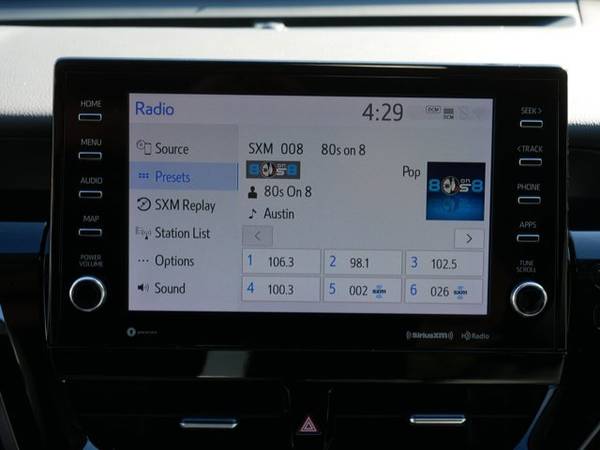 Front Wheel Drive., Power Steering., ABS., 4-Wheel Disc Brakes., Brake Assist., Aluminum Wheels., Tires - Front Performance., Tires - Rear Performance., Temporary Spare Tire., Heated Mirrors., Power Mirror(s)., Rear Defrost., Intermittent Wipers., Rear Spoiler., Automatic Highbeams., Daytime Running Lights., Automatic Headlights., LED Headlights., AM/FM Stereo., Satellite Radio., MP3 Capability., Bluetooth Connection., Telematics., Auxiliary Audio Input., HD Radio., WiFi Hotspot., Smart Device Integration., Requires Subscription., MP3 Capability., Steering Wheel Audio Controls., Bluetooth Connection., Power Driver Seat., Power Passenger Seat., Bucket Seats., Heated Front Seat(s)., Driver Adjustable Lumbar., Pass-Through Rear Seat., Rear Bench Seat., Adjustable Steering Wheel., Trip Computer., Power Windows., WiFi Hotspot., Leather Steering Wheel., Remote Trunk Release., Keyless Entry., Power Door Locks., Keyless Start., Keyless Entry., Power Door Locks., Universal Garage Door Opener., Cruise Control., Adaptive Cruise Control., Climate Control., Multi-Zone A/C., A/C., Leather Seats., Driver Vanity Mirror., Passenger Vanity Mirror., Auto-Dimming Rearview Mirror., Keyless Start., Smart Device Integration., Smart Device Integration., Requires Subscription., Power Windows., Power Door Locks., Trip Computer., Security System., Immobilizer., Traction Control., Stability Control., Traction Control., Front Side Air Bag., Telematics., Requires Subscription., Lane Departure Warning., Lane Keeping Assist., Lane Departure Warning., Front Collision Mitigation., Evasion Assist., Blind Spot Monitor., Cross-Traffic Alert., Rear Collision Mitigation., Tire Pressure Monitor., Driver Air Bag., Passenger Air Bag., Front Head Air Bag., Rear Head Air Bag., Passenger Air Bag Sensor., Front Side Air Bag., Rear Side Air Bag., Knee Air Bag., Child Safety Locks., Back-Up Camera.,