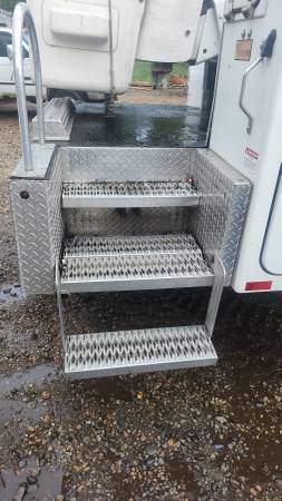 Service body has all kinds of organizers, heavy duty drawers, grounding leads, rope lighting, etc. Lockable boxes with key. Work platform extending off the rear or the truck. Vice mount. Exceptional condition,