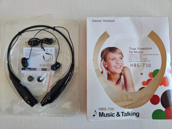 This is an HBS730 Bluetooth wireless neckband with an earbud headset, a neck-mounted Bluetooth headset for hands-free calling. Received as a gift but have one like this. Never lose your earbuds with these! This is new in the box. $10