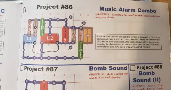 This kit comes with over 30 parts, which include snap wires, switches, resistor, photoresistor, speaker, motor, diode, lamp, battery holder, and integrated circuits which snap together easily onto the included plastic grid - no soldering required. Each piece is numbered and color-coded to make identifying them easy. These components combine to create working circuits. Projects are arranged in order of complexity, so kids can build on their skills as they progress through the manual.