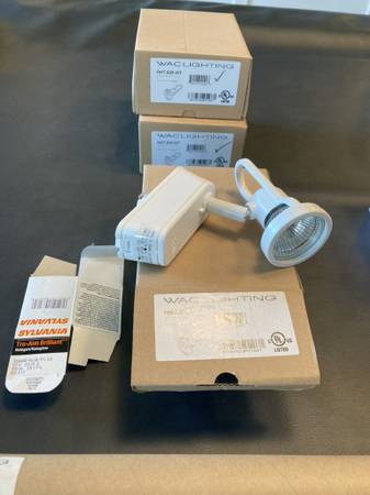 Offered here is a brand new in box full track lighting system. This 33 piece system was designed and sold by Southern Lights in Burnsville, MN. Never installed, never unpacked as I ended up moving. Contents include the following: 1 ea. HFC-WT floating canopy connector; 5 ea. HT6-WT 6 foot track pieces; 3 ea. HT-WT T connector; 12 ea. HHT-826-WT low voltage track head; 12 ea. SATCO S2605 (35W, 12V, MR16) lamps (installed in fixtures). Invoice shows all the details stated herein. Originally sold at $1360 and offered here at $900.
