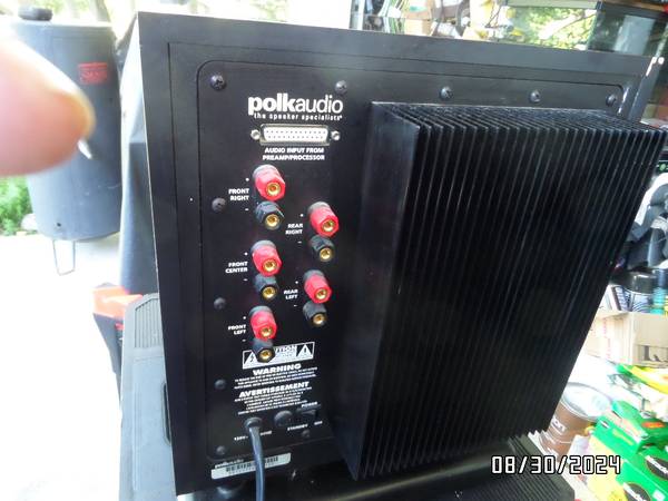 selling a very nice Polk audio powered sub that is still highly rated and works very well and sounds very good and weighs at least 30 Lbs. finished in Piano black it adds a touch of class to any decor and will blend in beautifully with your furniture. if the buyer wants i can offer 4 satellites and a center channel also made by Polk that came with this sub but they are about 6 inches tall but can handle the power you can throw at them. They are also finished in piano black color but i am selling them seperately for 4 200 for all 5 satelites that includes the center channel. The sub alone is still listed at over $ 500 on the internet when i looked it up last.