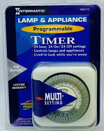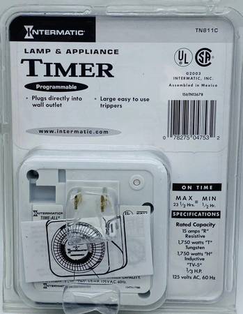 The Intermatic TN811C Lamp & Appliance 24 Hour Control is a heavy-duty programmable timer designed for controlling electrical devices up to 1750 watts. With a traditional white square box design, this rotary dial timer switch is suitable for mounting on the wall in any room. It offers 24-hour timer control, making it ideal for managing appliances and lighting circuits efficiently. The durable plastic construction and 15-amp current rating ensure reliable performance for all your electrical outlet needs.