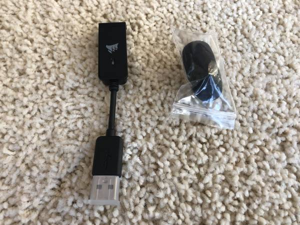 This headset is fully functional and comes in its original box. It is used and has some surface scuffs on the stem that the mic is attached to. The audio and the mic still work perfectly fine. It uses a single audio jack but comes with an additional USB adapter that will allow you to access its surround sound features.