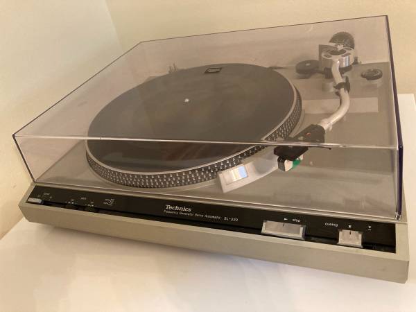 Technics turntable SL-220 in excellent condition! The turntable has been lubricated, speed controls have been thoroughly cleaned with deoxit and the speed is spot on, new belt installed, the plinth has been polished and detailed, the dust cover has been buffed and looks excellent, hinges are NOT broken. You will not find a cleaner vintage SL-220 in the states!