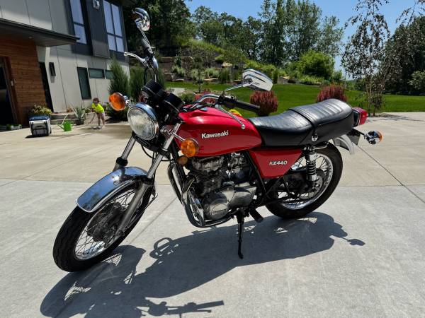 80 Kawasaki KZ440 in great condition. New gel battery. 13468 as of 06-20-2025 (will go up due to riding). Progressive rear shocks. No dent on tank. Chrome is in great conditions. All lights working. Horn works. Gauges all operational. Headlight and taillight not cracked/chipped. Runs. Takes a bit to start after sitting but after warmed up starts right up. $1550/OBO/Or Trade.