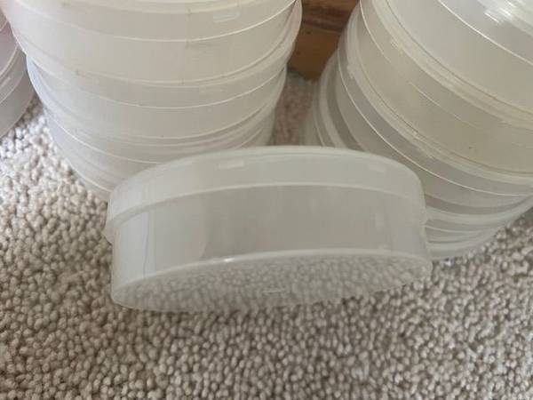 28 Plastic Electrical Tape Containers with lids. 3 1/2 inch diameter. $5 cash only for all 28 containers.