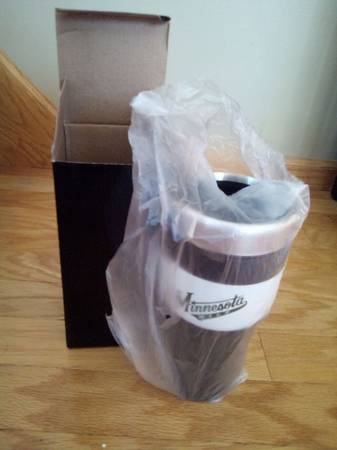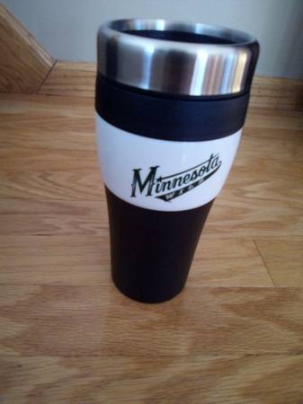 Minnesota Wild NHL Hockey Hot/Cold Travel Mug new in box from a smoke-free, pet-free home. 7 inches tall x 3 inches in diameter. Great for coffee, tea, soda, water. $15 cash only.