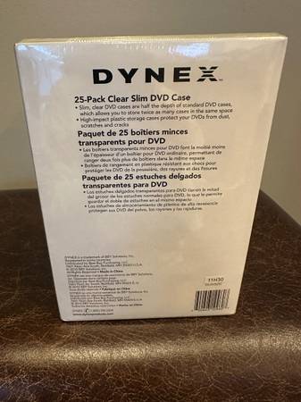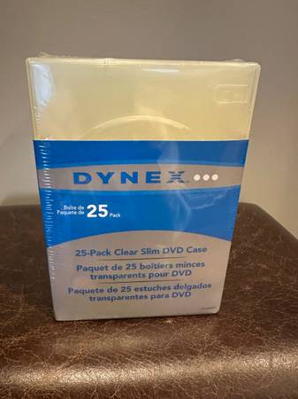 Dynex 25 pack clear slim DVD cases for $20. New/sealed package Call/text if interested Cash only please