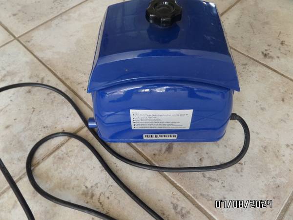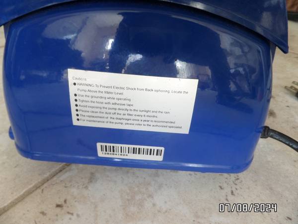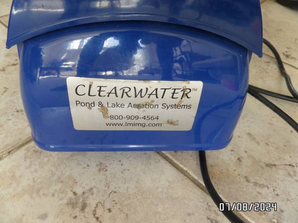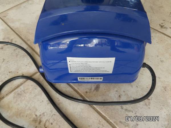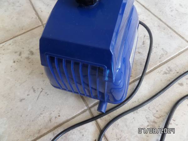 selling a very nice pond air supply pump that can deliver more than 65 liters of clean air to a pond or other water body supplying much needed oxygen to fish and other animals. This pond air pump has a very long maintainance free life and the only thing that needs checking is a filter that is on top of the unit that can be accsessed by removing a knob on top of the unit. This filter can be washed and dried before it is placed back in the unit or a new one can be put in its place minimizing down time. This pump produces enough pressure to have deep air stones or diffusers in any aquatic setting. can have multiple supply outlets as well. The pump is very quiet when in opertion.
