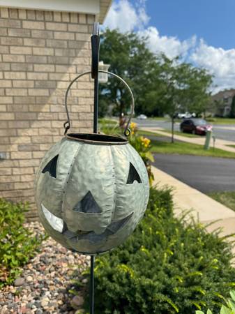 Add a touch of Halloween spirit to your home door with this Jack-o’-Lantern. Crafted from galvanized metal, this large Jack-o-lantern Pumpkin is perfect for decorating your front porch, entryway, side walk, or deck. Add a candle, or LED flameless candle, or string lights to bring a little hocus-pocus t your Halloween décor.