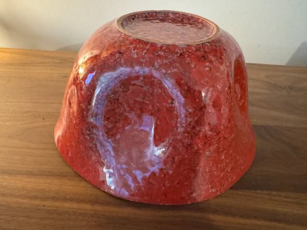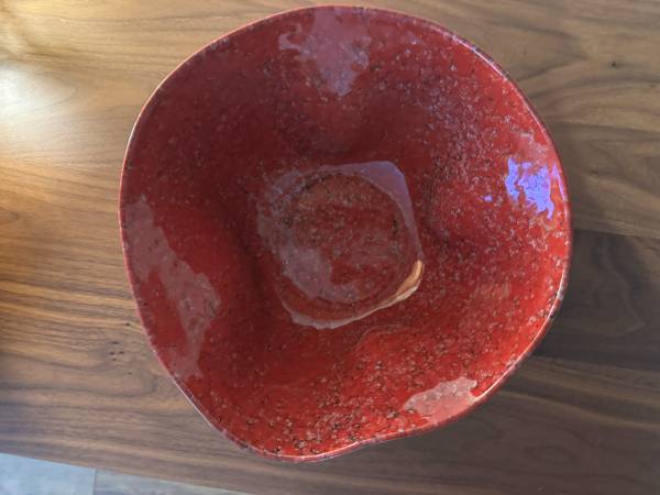 Beautiful ceramic pinched bowl by Alvino Bagni, made in Italy. Great condition with no cracks or chips. Glossy and vibrant color for any room of the house. Especially great as a centerpiece bowl on your dinner table. Great for display or special occasion use. This handmade bowl is intentionally uneven/asymmetric, so it stands at approximately 11-1/2" at its widest in any given direction and 5-3/4" tall. Please see photos for condition and decide for yourself as all sales are final. Thanks!